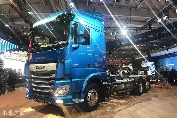 欧洲商用车厂商达夫(DAF)展出了一台XF 480载货车,从车架尾部的牵引销和电气接口可以看出,它能够牵引中置轴挂车。